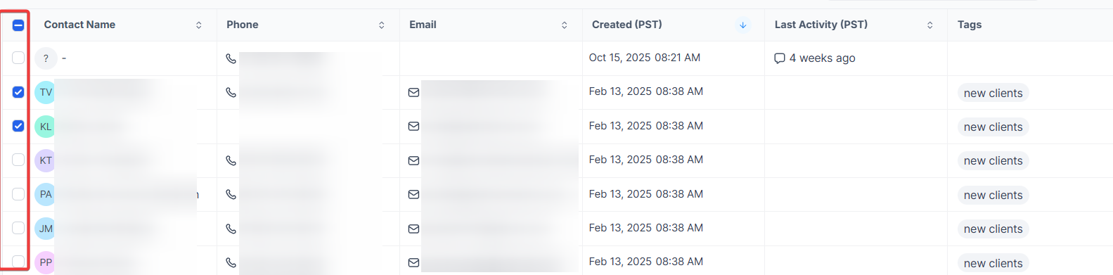- Check the box to select contact records.