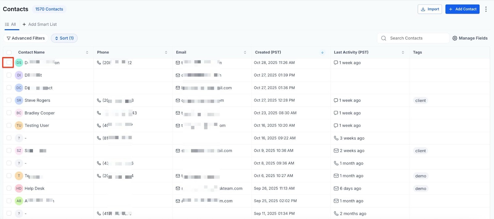 - Check the box to select contact records.