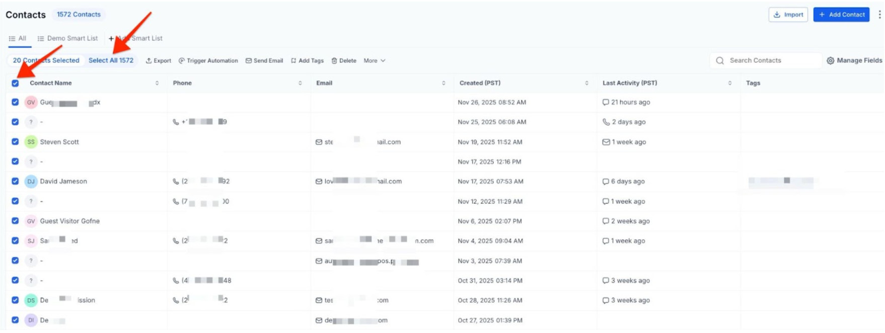 Bulk Actions allow you to perform a single action for multiple contacts at once.