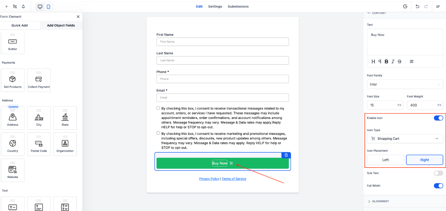 - The Inline Editing feature allows users to edit text elements directly within the builder preview. You can click, type, and instantly update text elements like labels, placeholders, options, and buttons. Click on any text element in the builder, edit it directly, and see your changes reflected instantly.