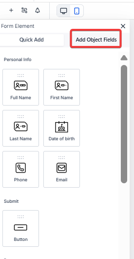 - You also have the option to add your custom fields. Next to the Elements (Quick Add tab), you will see the Custom Fields.