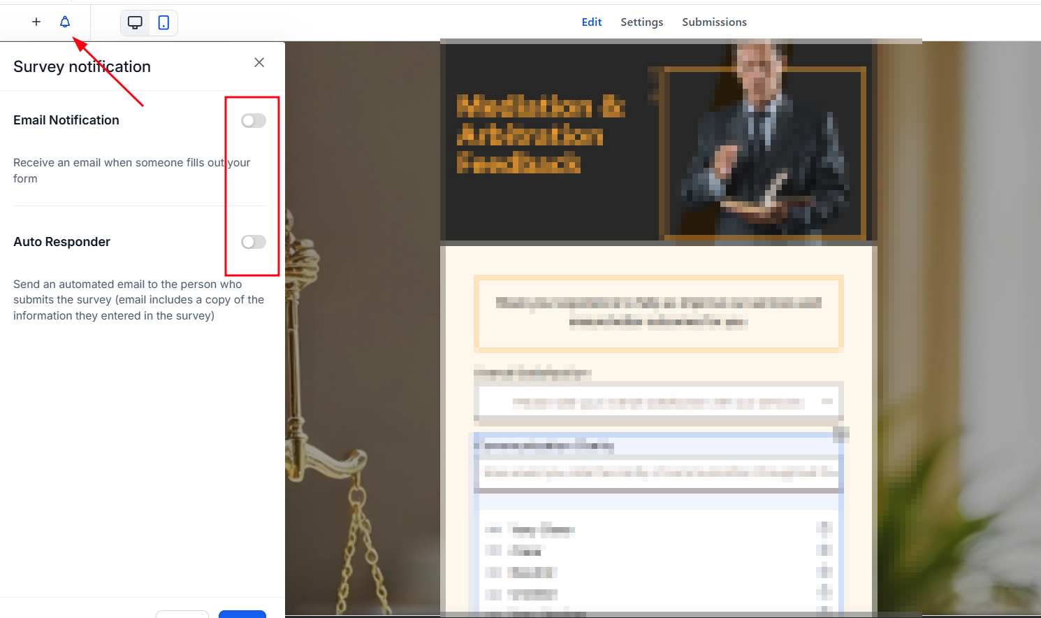 - Enable Email Notifications to receive an email notification whenever someone submits a survey.