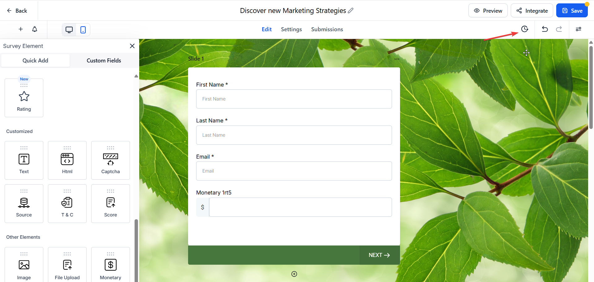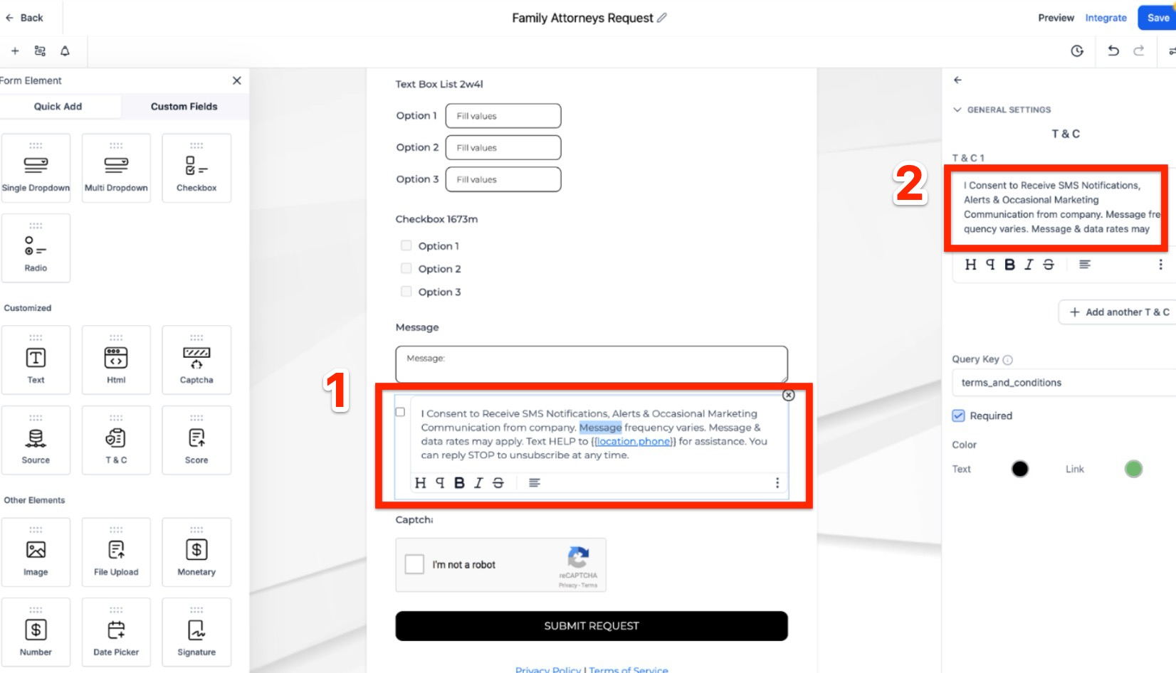 Note: The Image element can resize the image in the builder itself. You can also align the image and add text to it for SEO purposes. Custom Fields can be anything from “What’s your Favorite Food?” to “Annual Income” to “Favorite Movie” and more. You can completely customize custom fields and include text boxes, signature fields, drop-down menus for selecting from a list of options, etc.