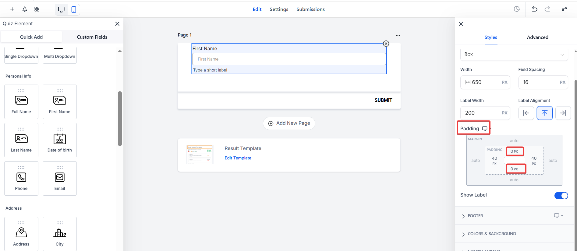 Surveys support true zero padding on the top and bottom, allowing complete control over vertical spacing. This helps create cleaner, more precise designs without unnecessary whitespace; it is ideal for achieving pixel-perfect alignment and modern layouts.