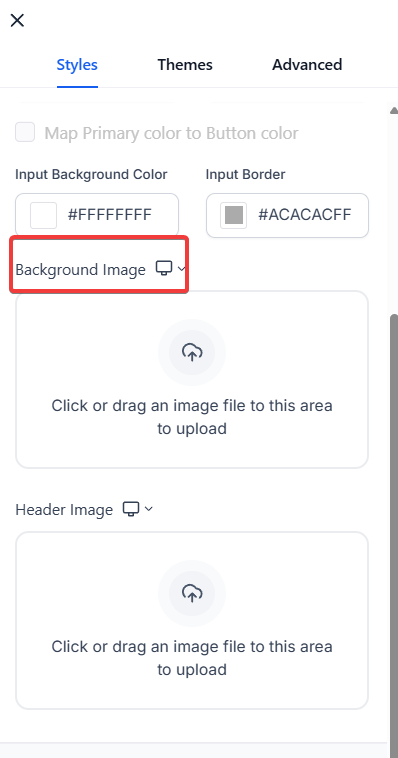 - Scroll down in the menu, click on the upload area, or drag an image file to this space to add a header image of your choice.