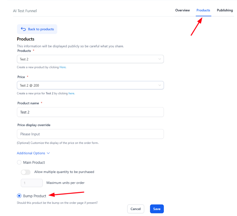 - Give it a name, and in Additional Settings, select the Bump Product option and click Save.