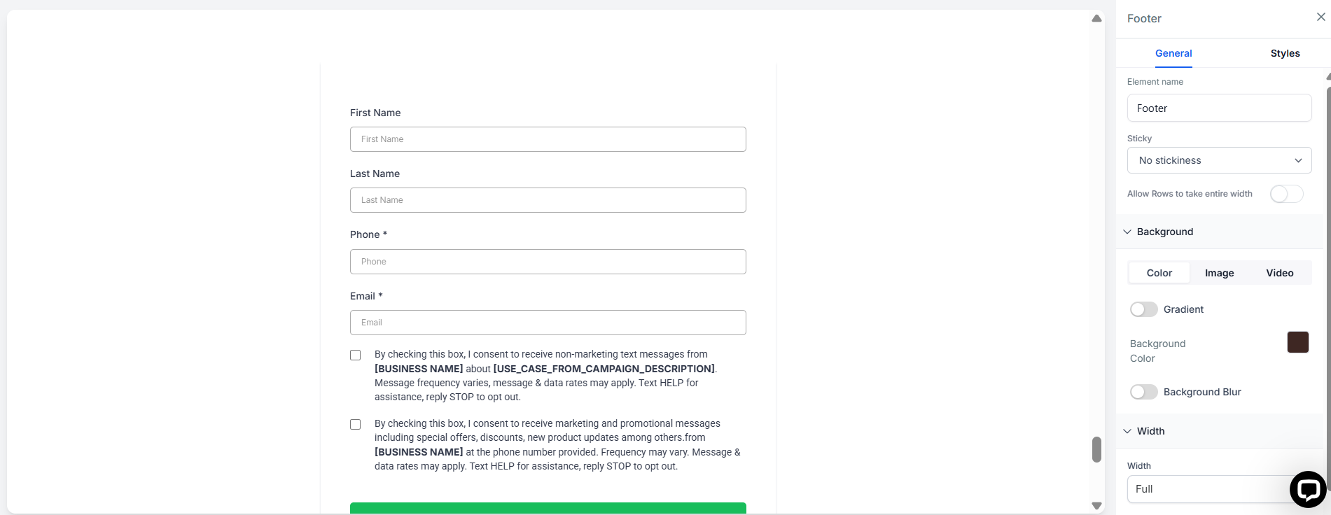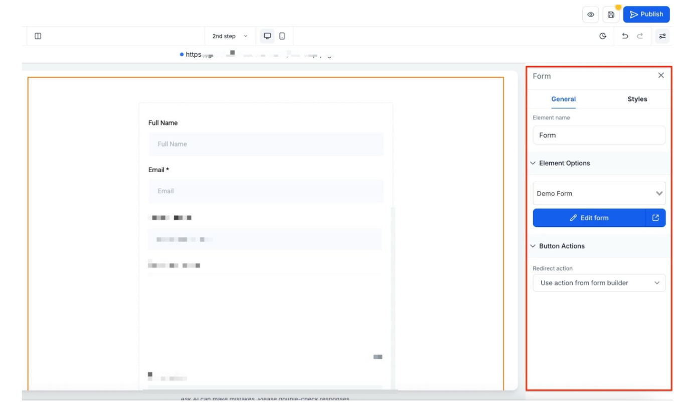 - Click on the form element to open the settings on the right, and edit your submit options as needed, then save.