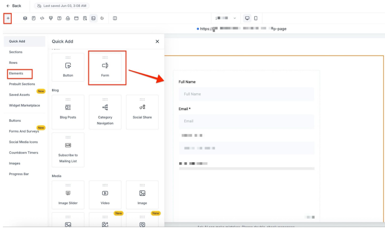 - Use the Eye icon to preview the funnel step containing the form.