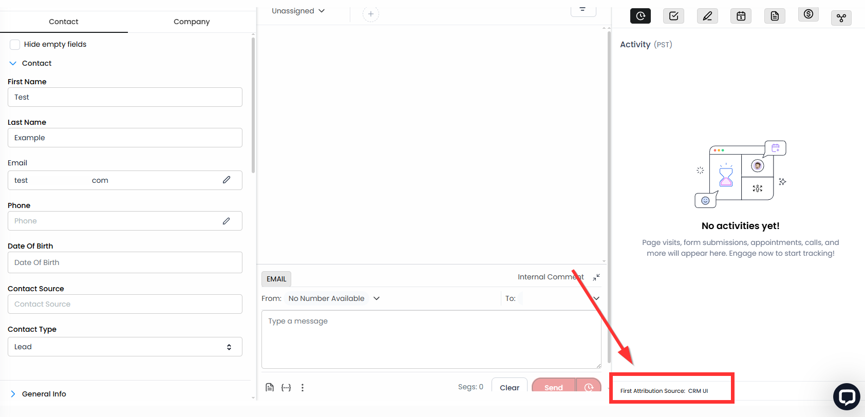 Whether it is the first or latest attribution data, you can locate this information in the bottom right of all contact records.
