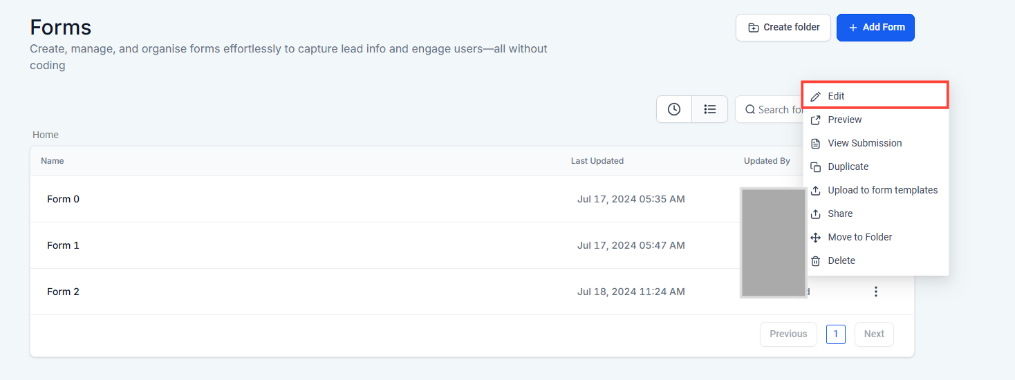 - Navigate to the form or survey you wish to edit within the Form Builder.