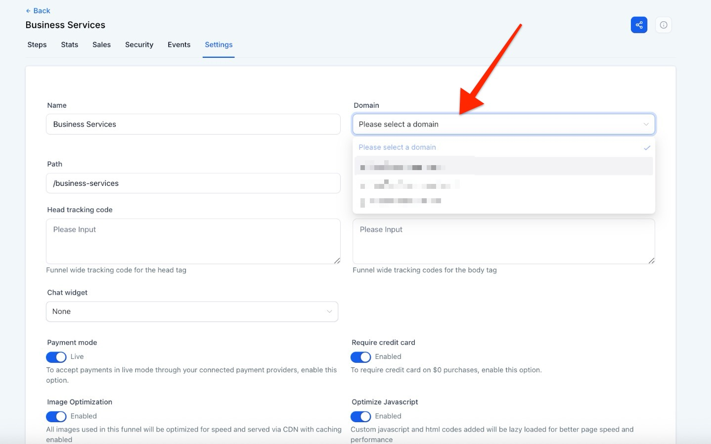 Step 2: Attributing Domains Directly in Funnel or Website Configurations