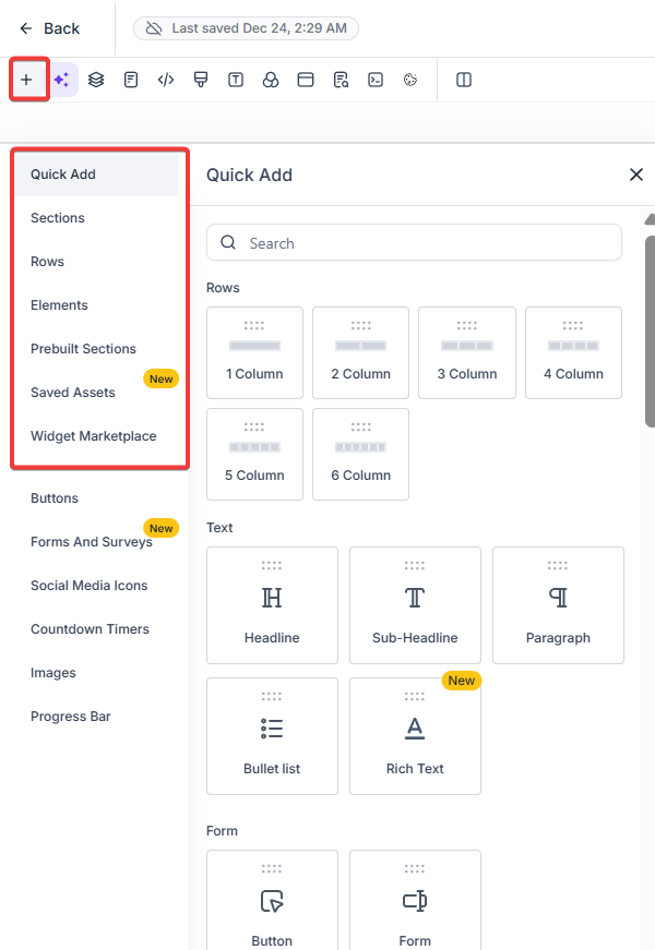 Depending on the margins desired for the funnel, decide whether you would like full width for the sections or not. This setting helps have preset margins that are consistent throughout the entire funnel.