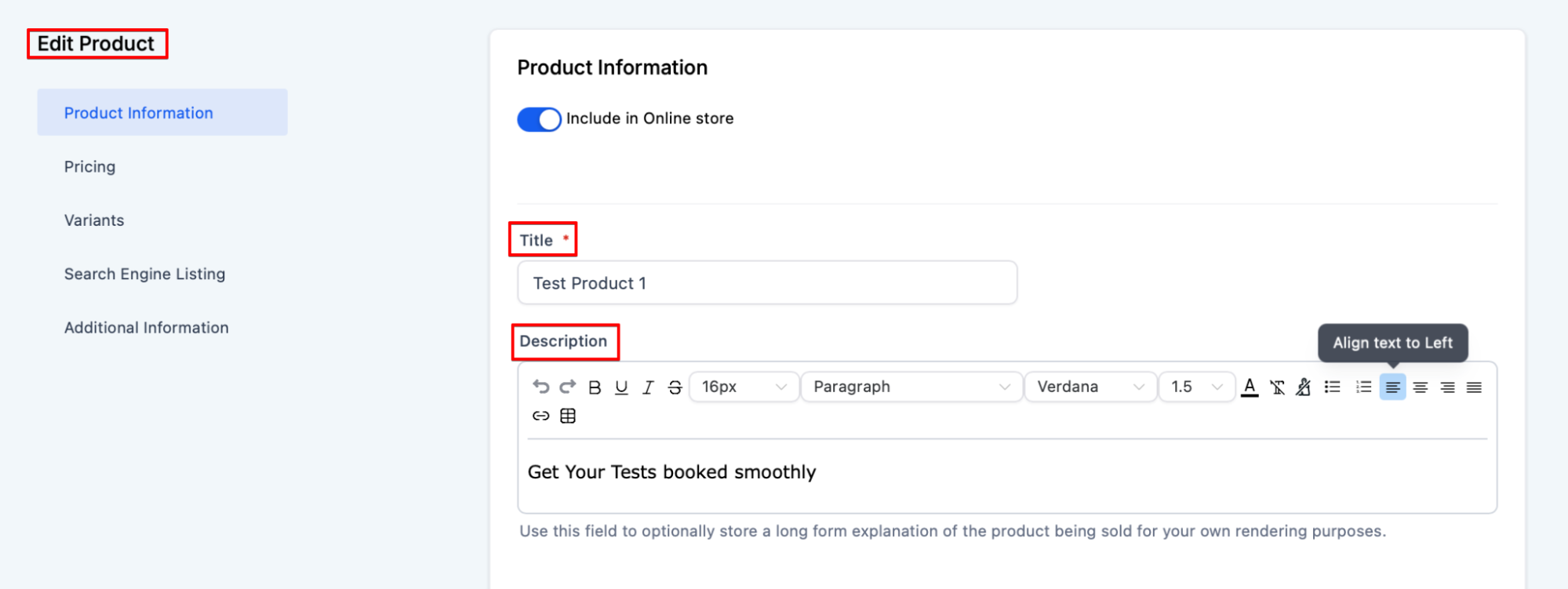 - Rich Text Descriptions to create dynamic, detailed product descriptions.