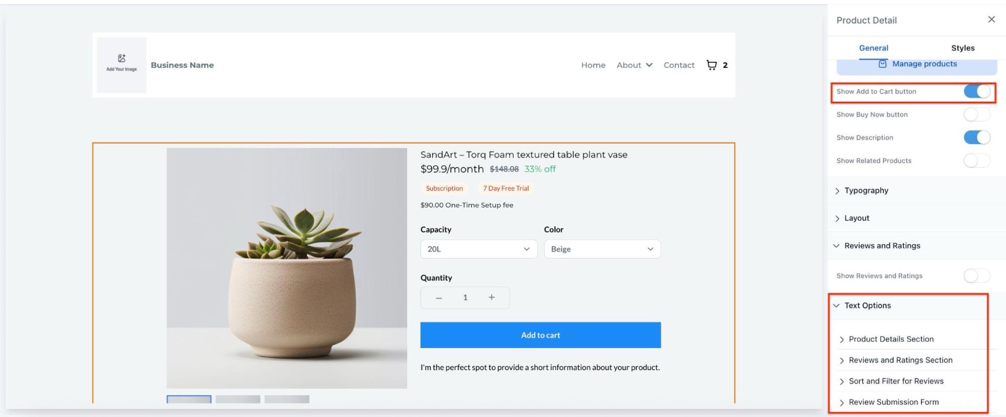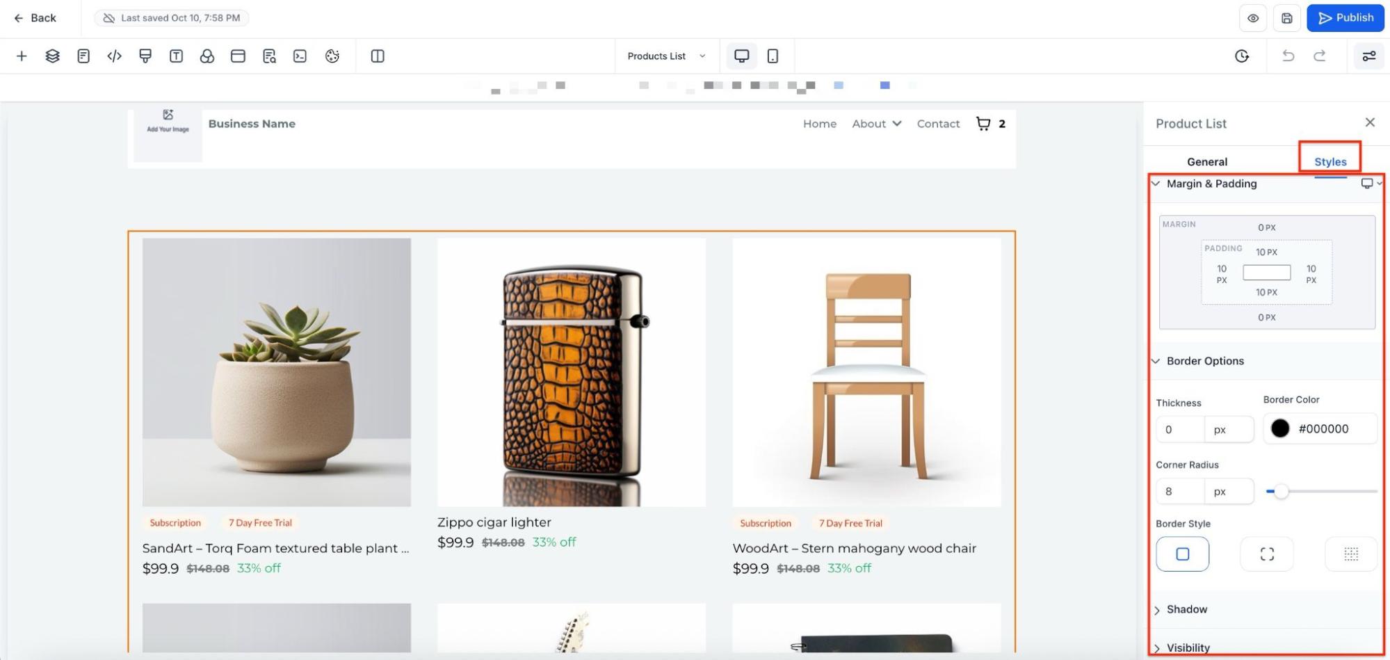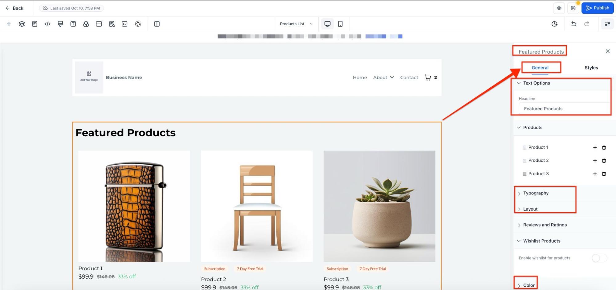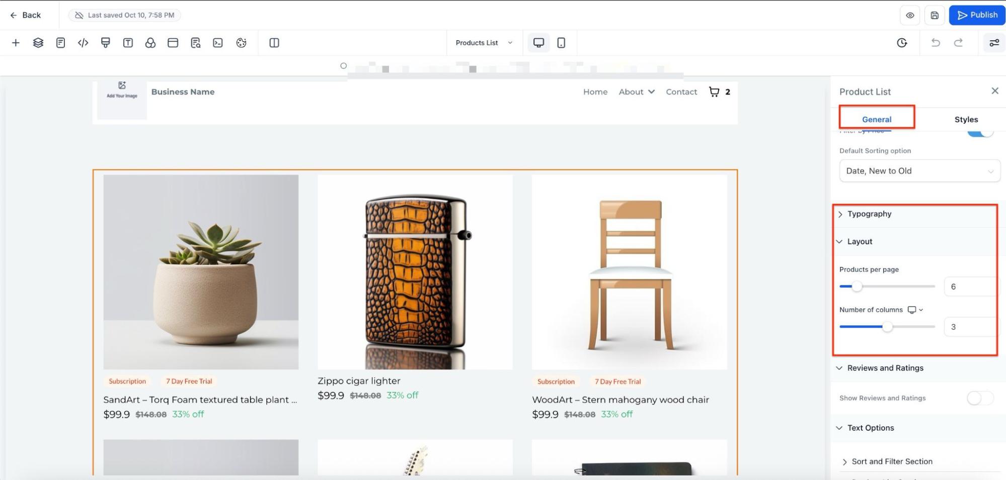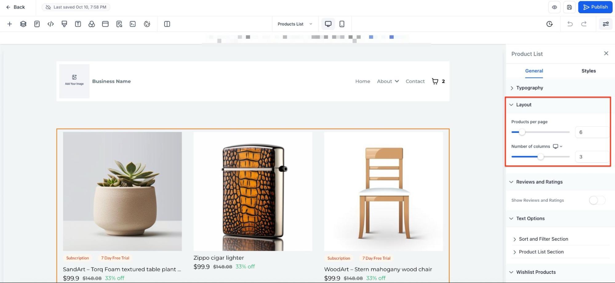 - Customizing Product Display: E-commerce store owners can customize the number of products displayed per page (3 to 24) by selecting the product list element and adjusting "Layout options," allowing for more flexible and appealing layouts.
