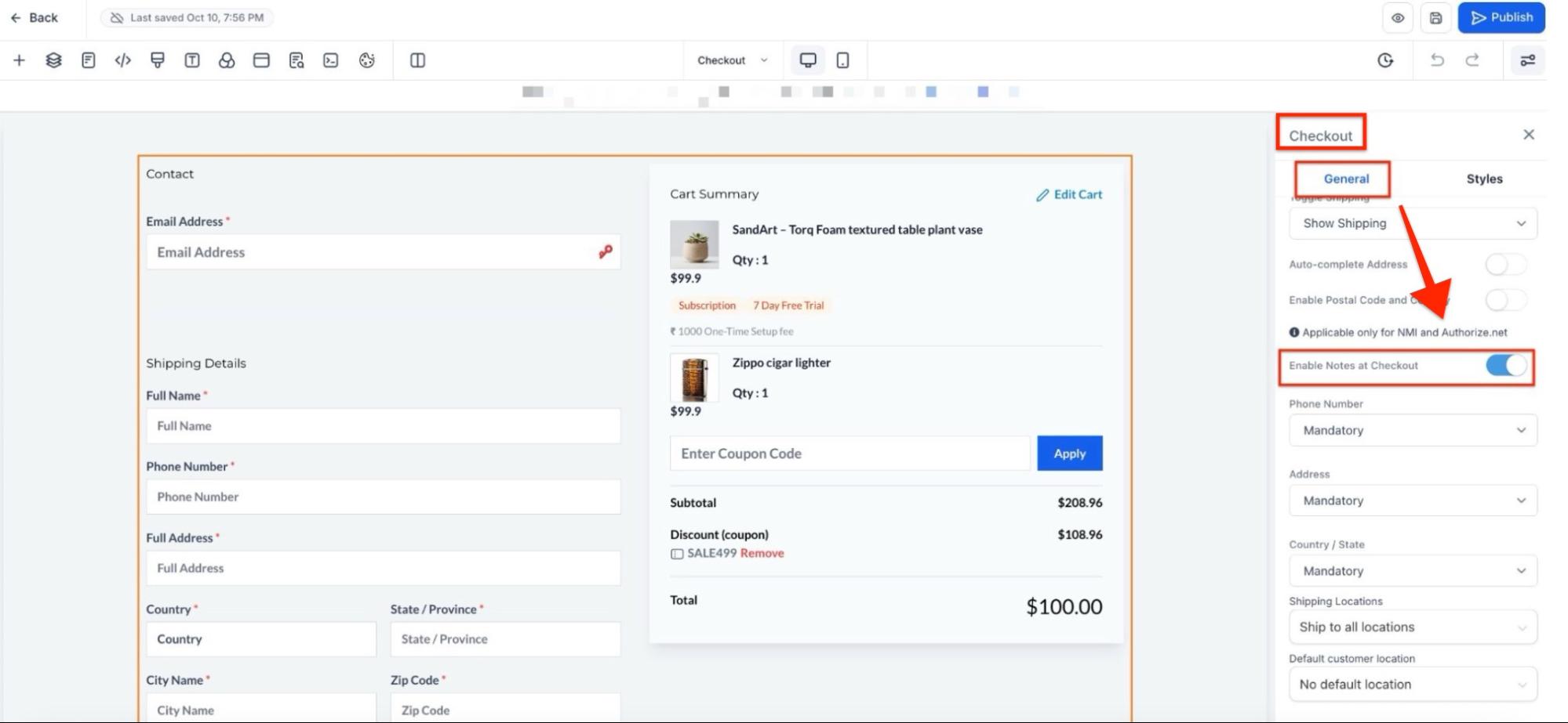 - Additional Notes Section on Checkout Page: This allows customers to provide specific instructions or details about their orders directly during checkout. This optional section enhances the checkout experience by offering flexibility for customers to communicate special requests.