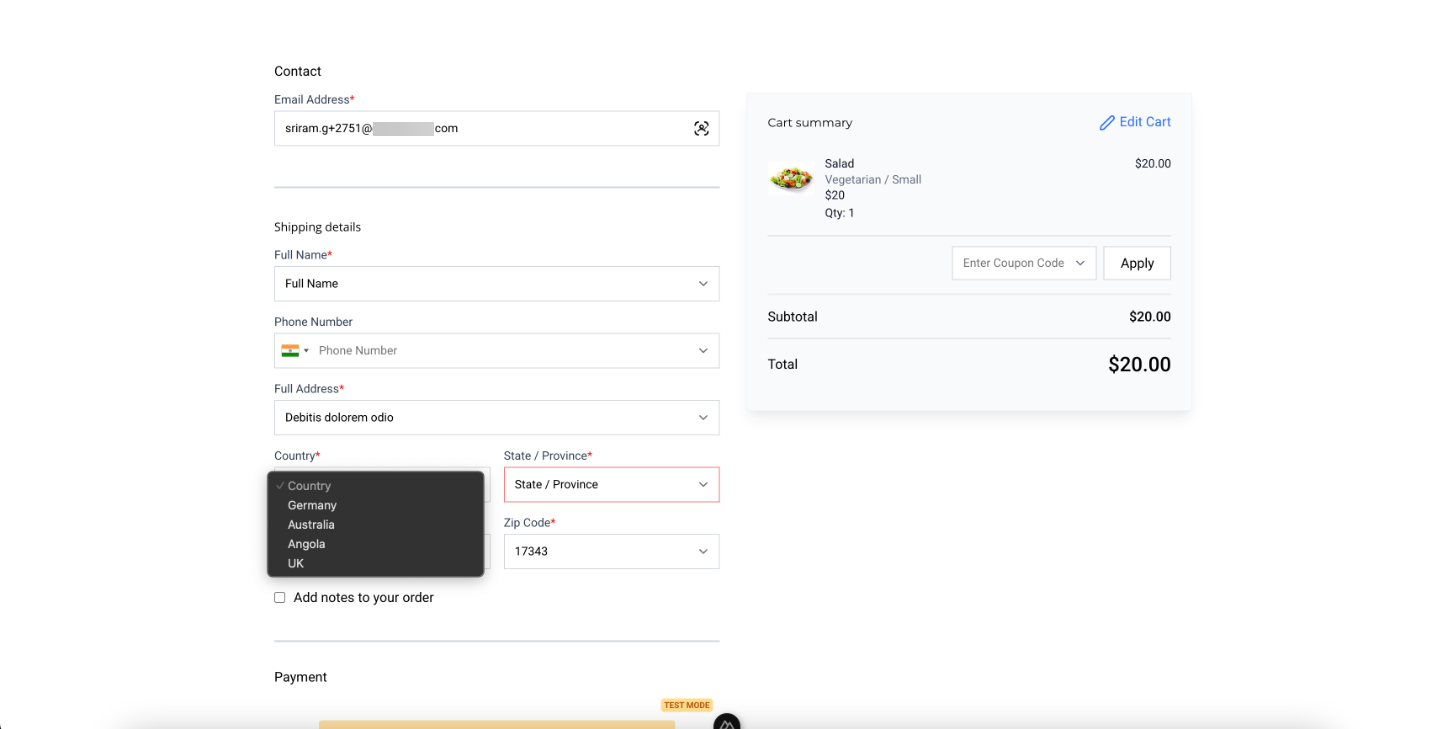 - The Geolocate feature simplifies the checkout experience for international customers by automatically detecting their location.