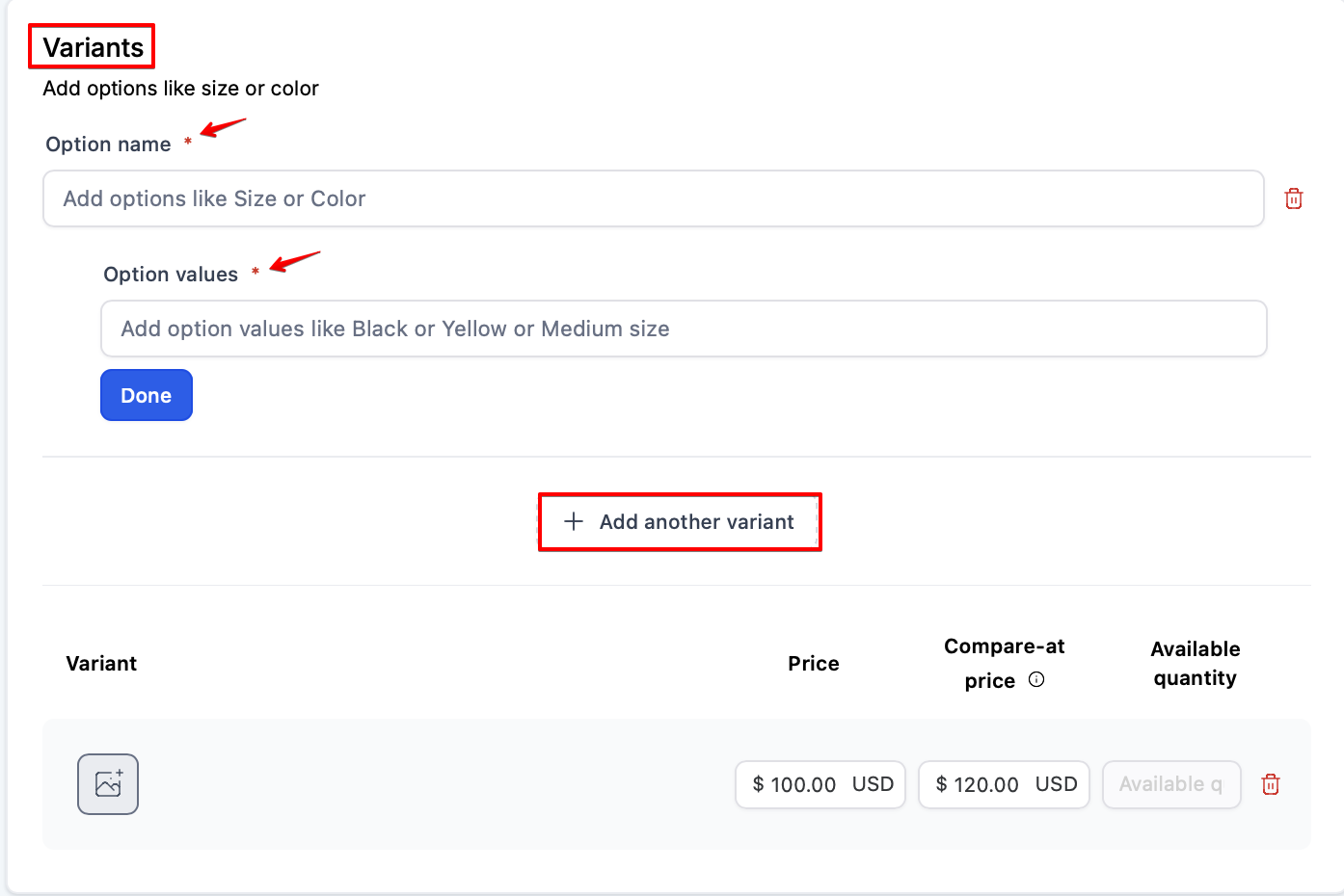 - If the product comes in different sizes, colors, or materials, you can specify these options in the product variants