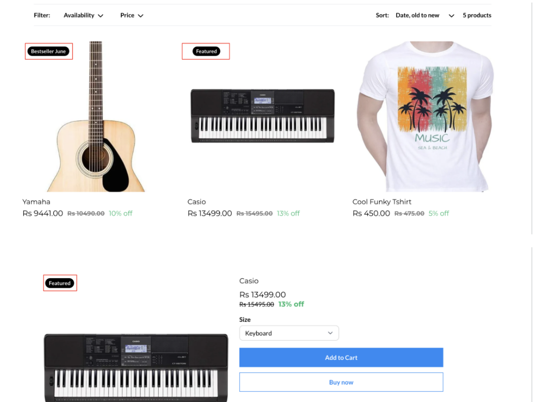 - Add customizable product labels or ribbons to highlight products on product lists and details pages.