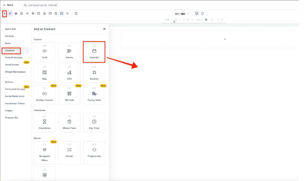 1- Add a Calendar Element: If needed, add a calendar element to your scheduling page using a drag-and-drop interface.