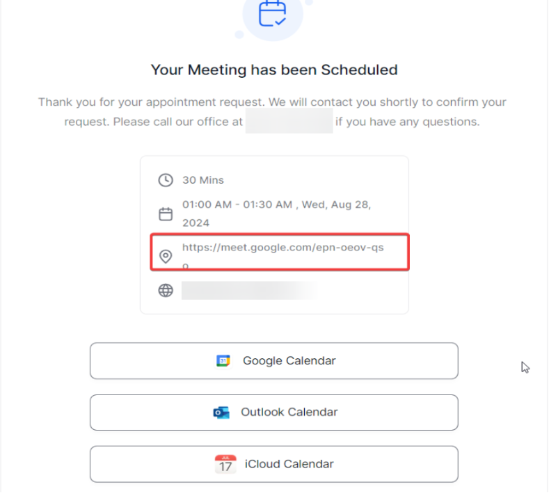 Note: To generate Google Meet links for each appointment, ensure that a Google Calendar is set as the linked calendar. If no Google Calendar is linked, Google Meet links will not be generated.