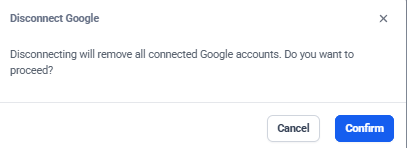- To disconnect an account, click the 'Connected' button and confirm deletion.\