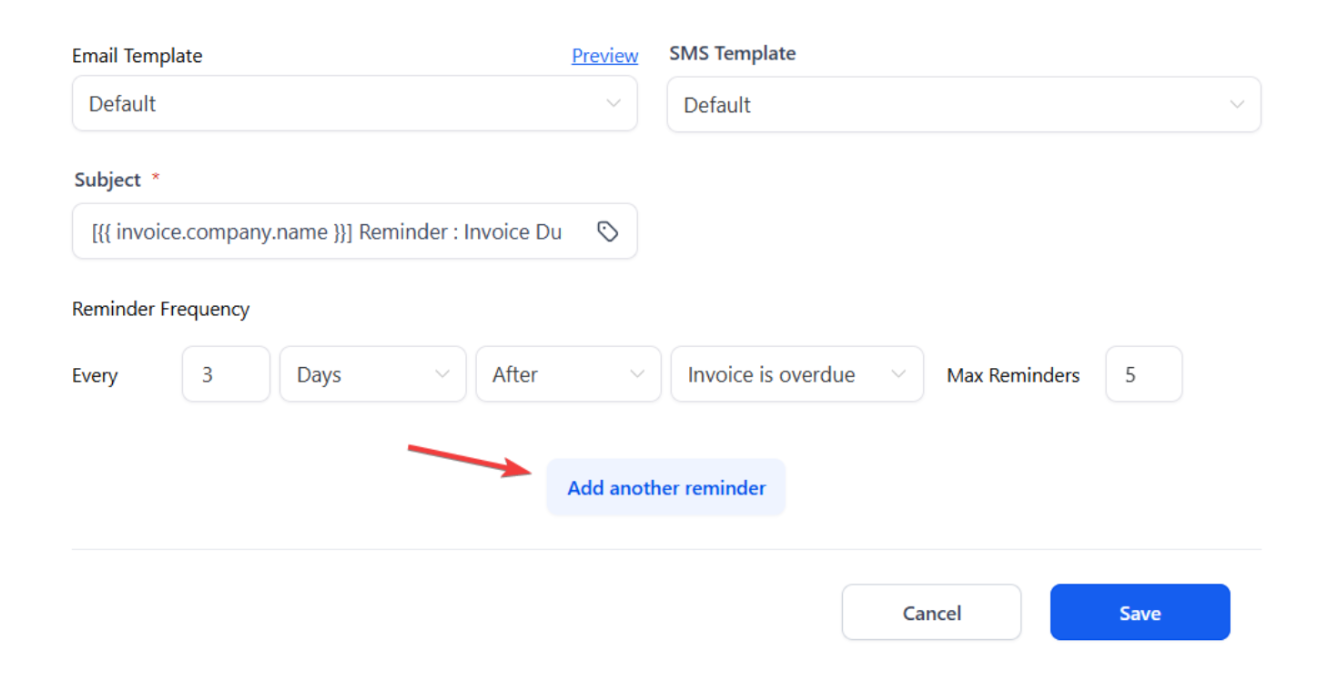 By default, three reminders will be pre-set. This ensures timely payment follow-ups without requiring manual configuration. You can disable or customize the default reminders as needed.