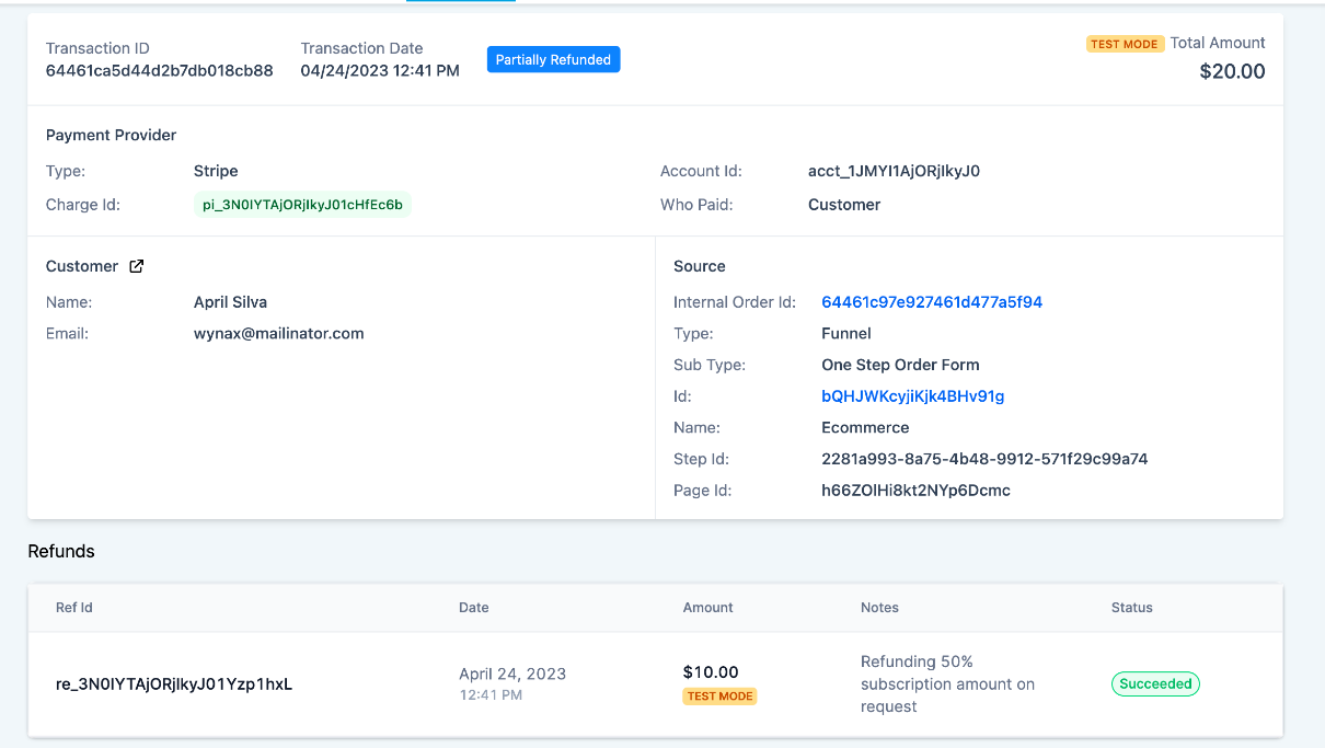 - You can process refunds directly from this page, without needing to access your payment provider’s dashboard separately.