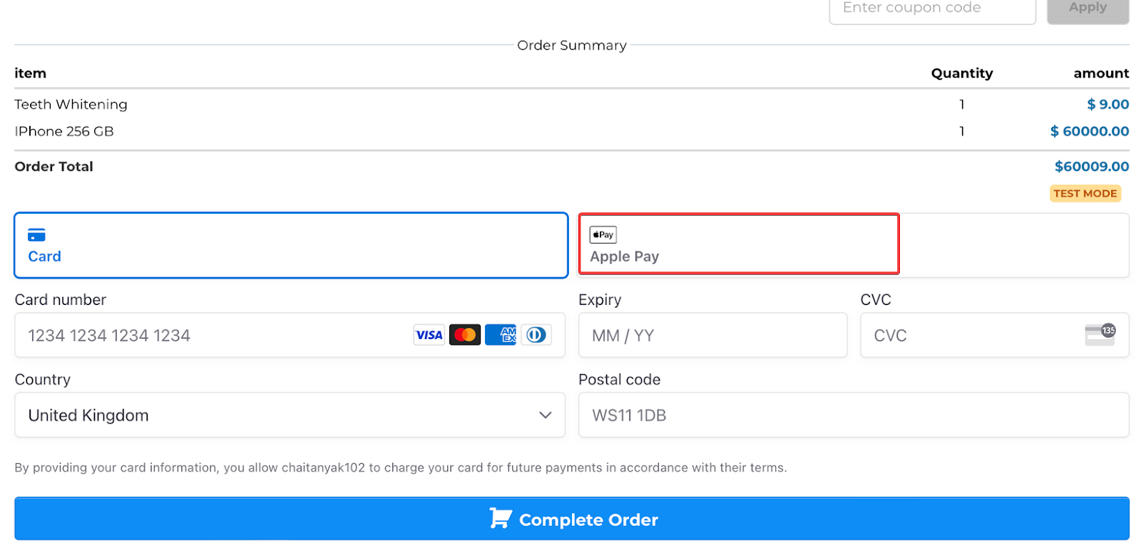 Once completed, Google Pay and Apple Pay will show alongside the credit card option on order forms. Recurring payments and upsells are supported with Apple Pay/Google Pay