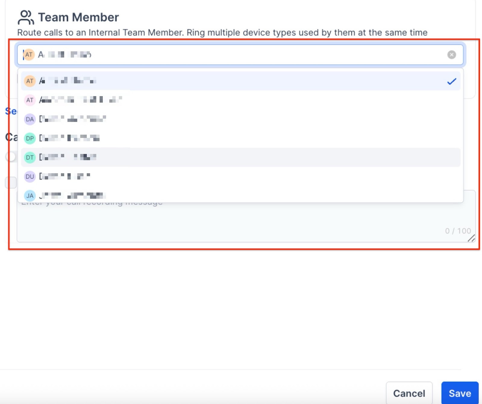 - Select up to eight users who will be notified of incoming calls. This ensures that the first available team member can promptly answer the call.