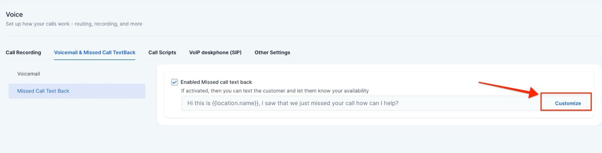Please Note: If you further customize the message you will want to disable the missed call text back within settings.