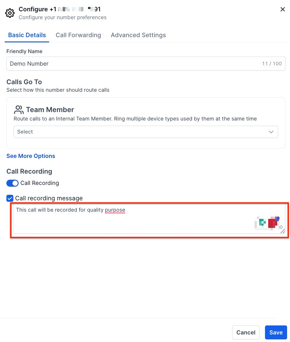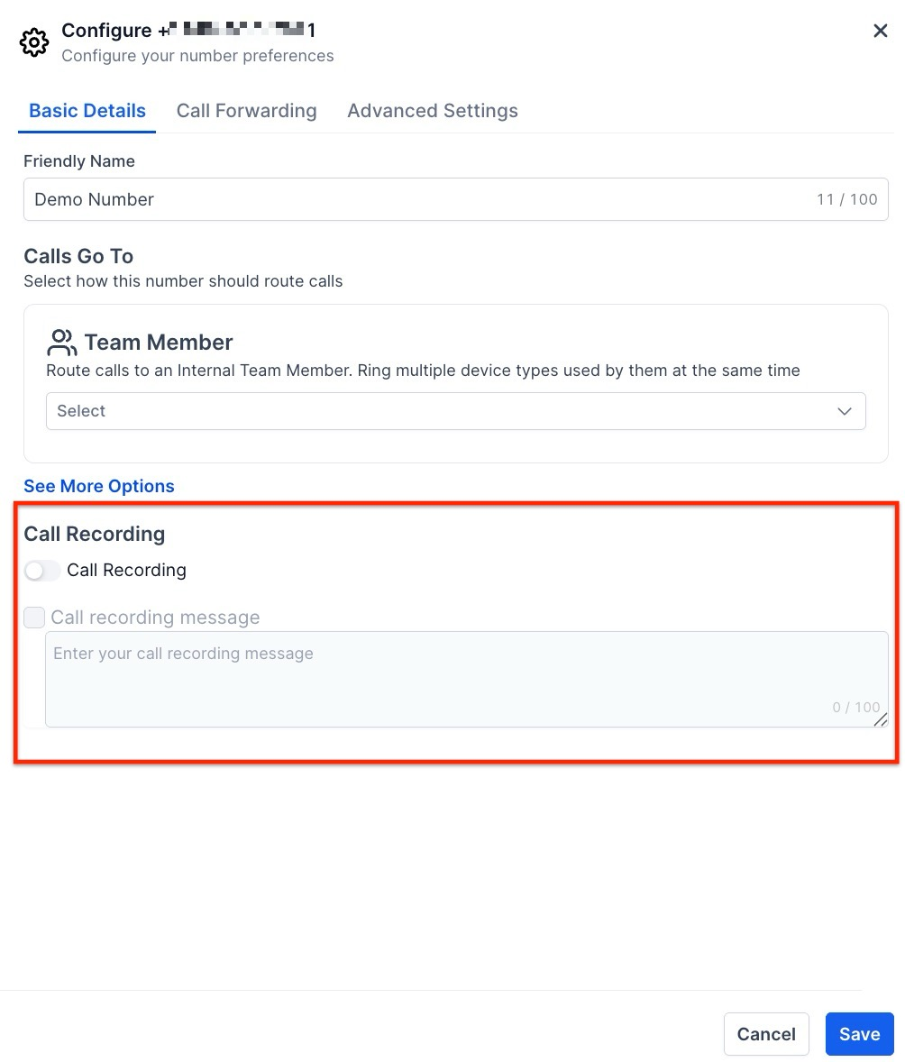 - Simply enable the call recording feature, Save the changes, and all incoming and outgoing calls on the selected phone number will be automatically recorded.