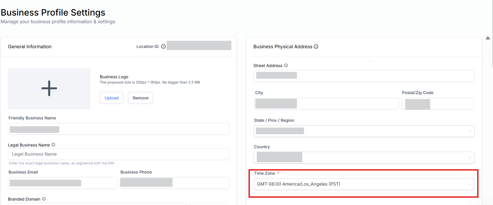 Firstly, you will need to ensure that the time zone in the business settings is consistent with your actual time zone. This can be accessed in Settings > Business Profile > Time Zones. Save the time zone and hit ‘Update Address’.