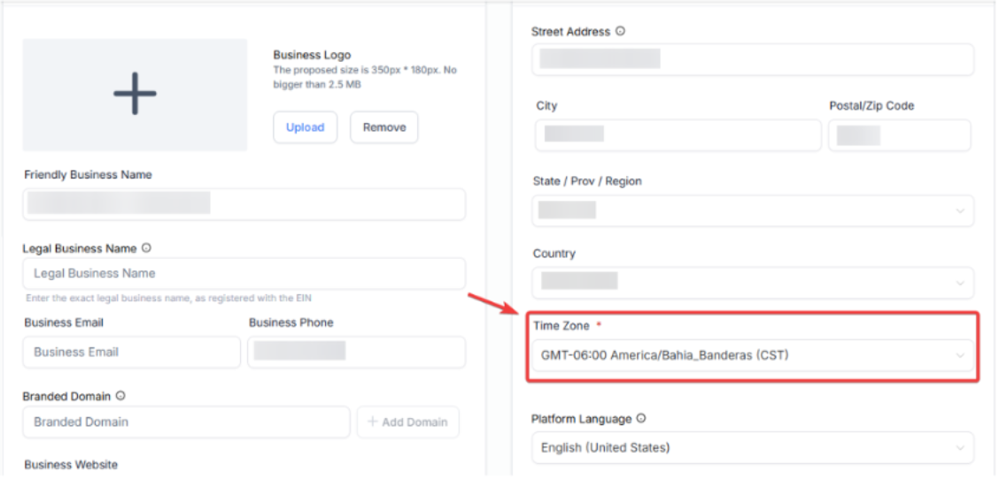 The location time zone determines the time frame for all scheduled events, tasks, and reminders within your account. If set correctly, it helps avoid scheduling errors and ensures that all activities align with your business’s preferred time frame.