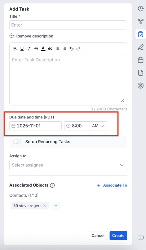 The time zone setting affects all scheduled activities, including tasks, appointments, and contact interactions. Ensuring the correct time zone is set is crucial for accurate scheduling, reminders, and timestamp consistency across your platform.