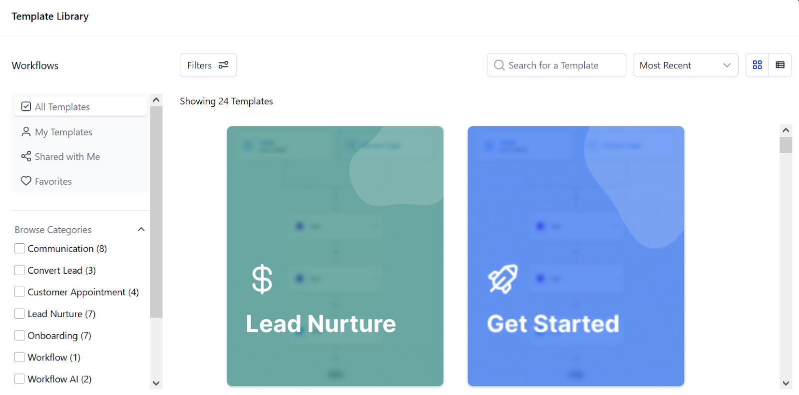 - To enter the builder, click the + Create New Workflow button at the top right of the screen again.