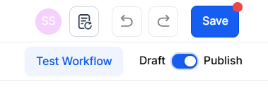 - Test your workflow with the "Test Workflow" button, save changes, and switch from Draft to Publish to activate it.