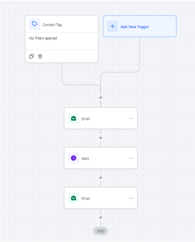 The workflow builder is an advanced visual tool for creating seamless automation. It integrates triggers' and campaigns' functionality with additional features for a comprehensive automation setup.