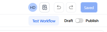 - You can also do this from within a workflow by clicking into the workflow, toggling on and off the draft/publish toggle, and saving the flow.