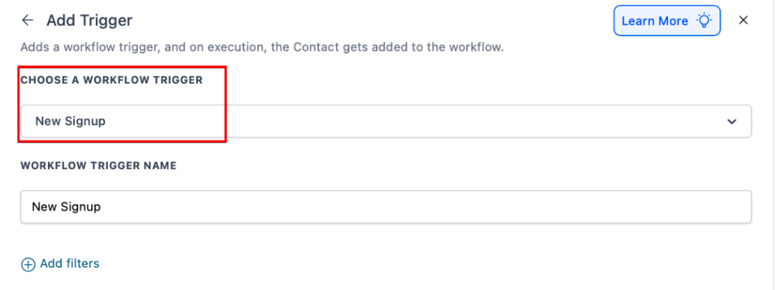 - Add the ‘new sign up trigger’ from the courses category in the workflow builder:
