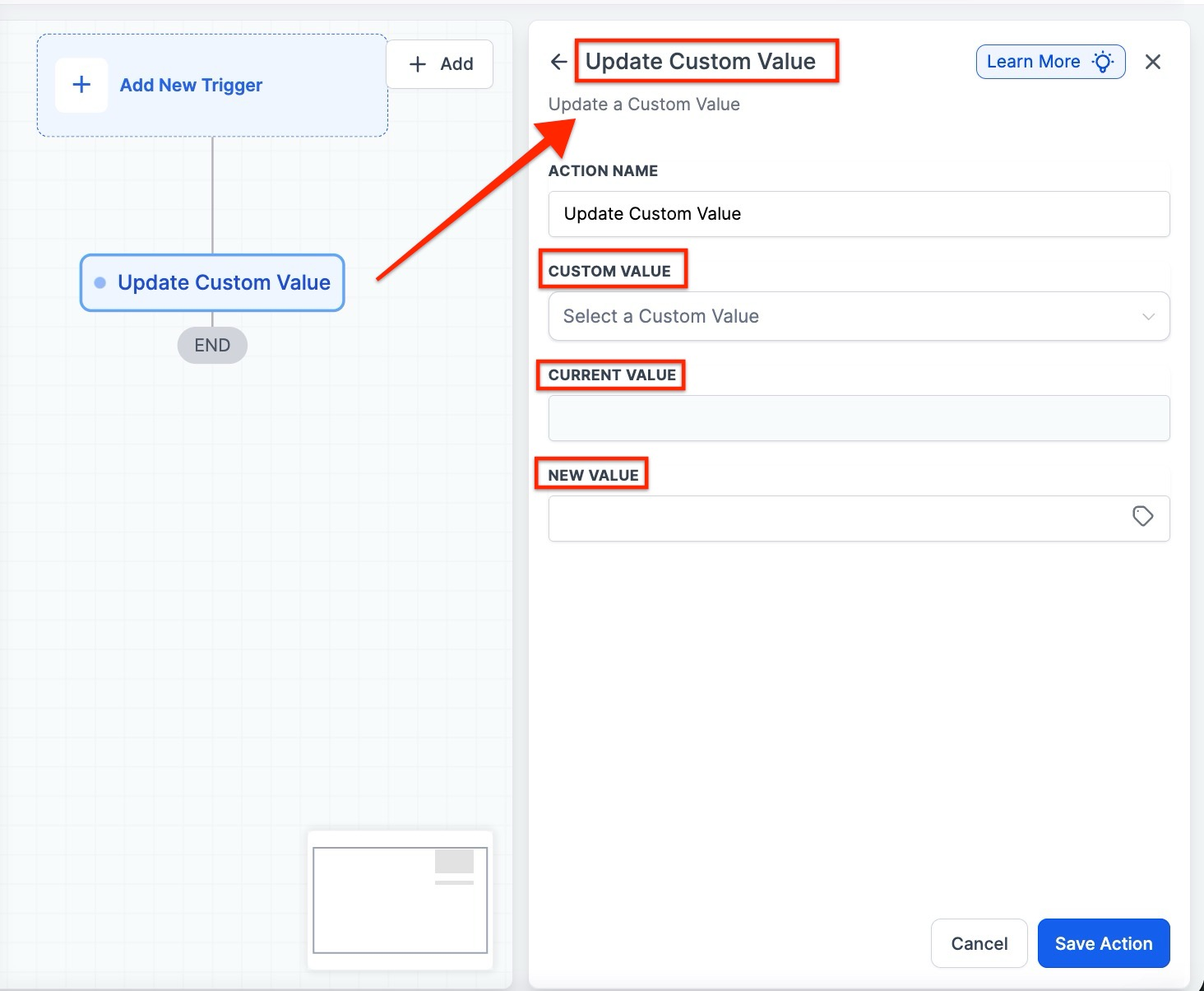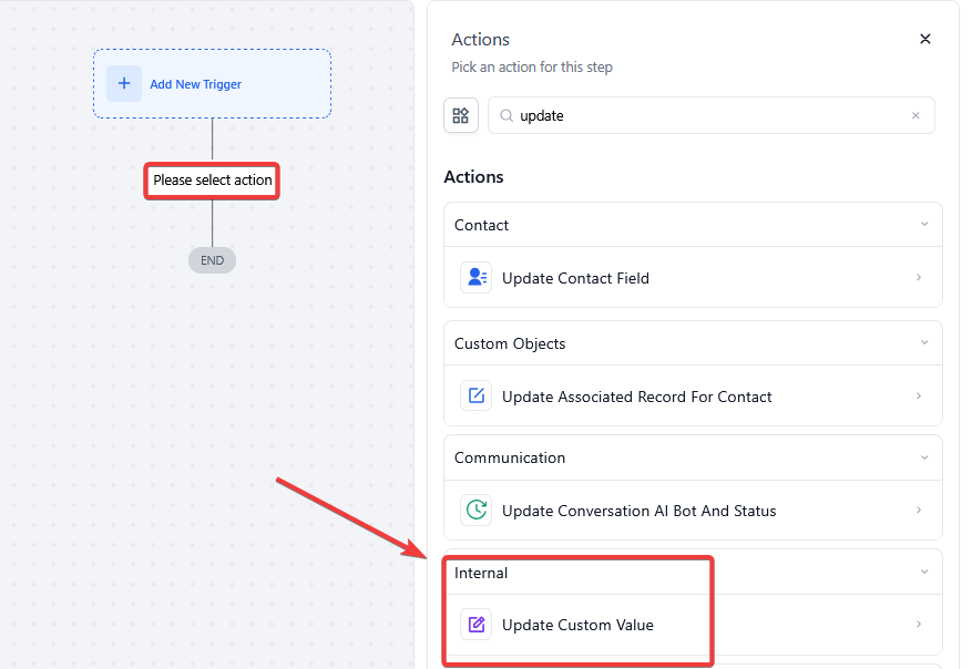 Step 3: Setting up the Update Custom Value Action