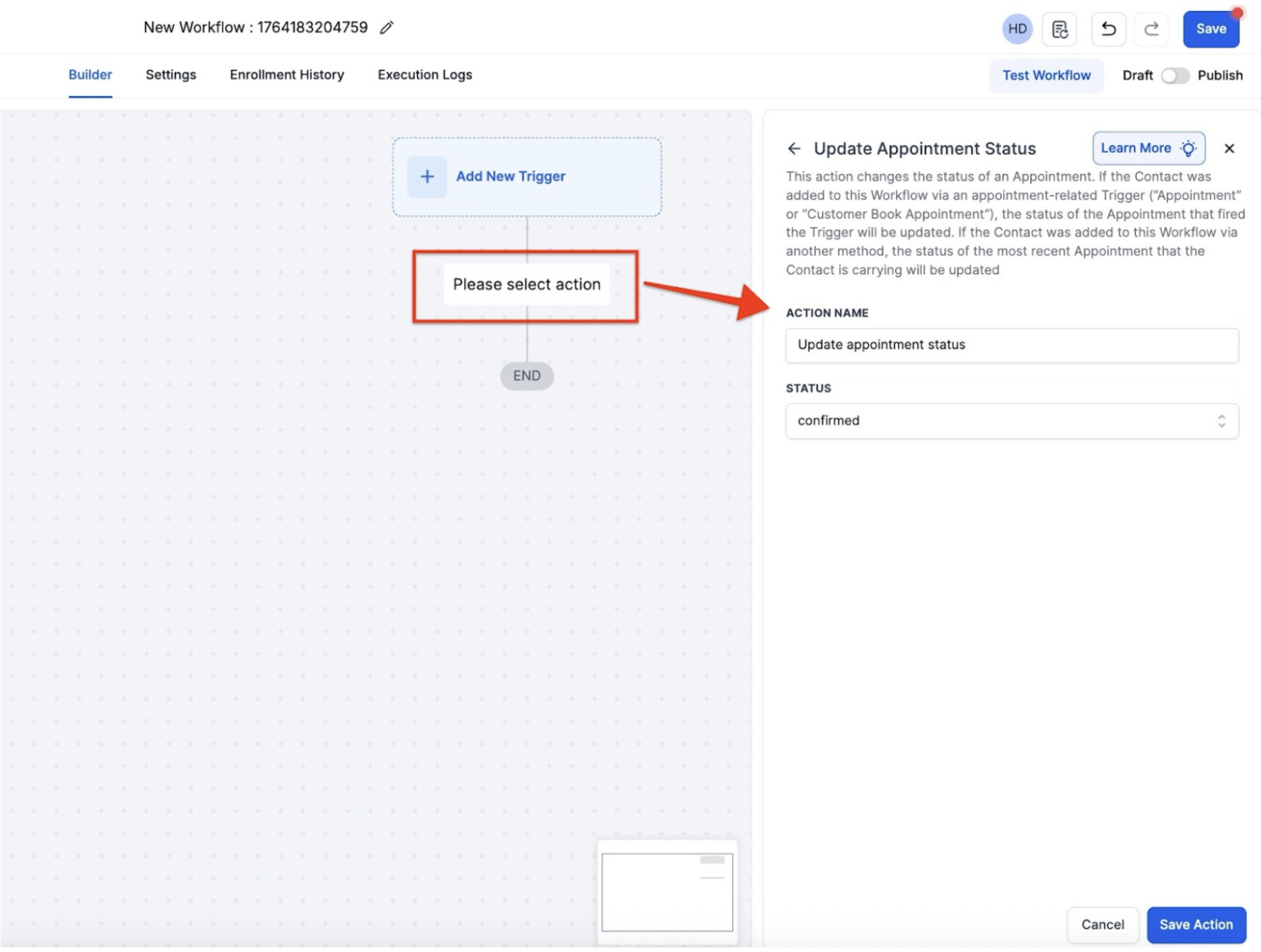 - Step 2: Add the Update Appointment Status Action