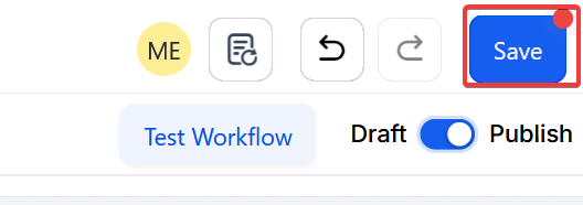 - If your Workflow is ready to be enabled, make sure the toggle switch under Save is set to Publish