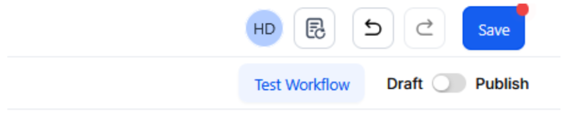 - If your Workflow is ready to be enabled, make sure the toggle switch under Save is set to Publish