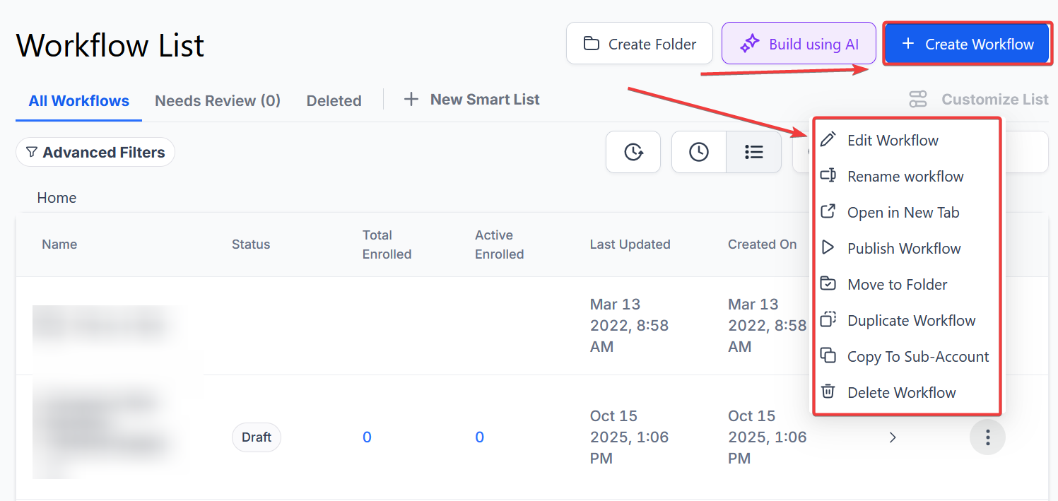 - Navigate to Tools & Reporting > Automations > Workflows. Choose to create a new workflow or edit an existing one.