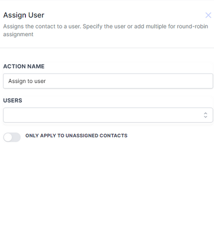 To assign a user, add the "Assign to User" action in the workflow before the Manual SMS Action. Select the user or team who should receive the task, ensuring the correct person is responsible for sending the SMS.