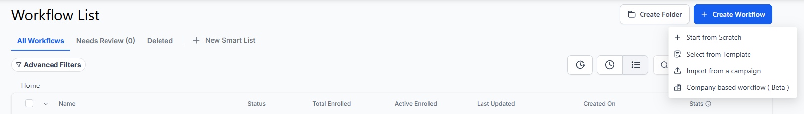 - Navigate to Tools & Reporting > Automations > Workflows and start a new workflow or edit an existing one.