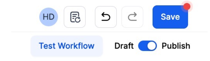 - If your Workflow is ready to be enabled, make sure the toggle switch under Save is set to Publish