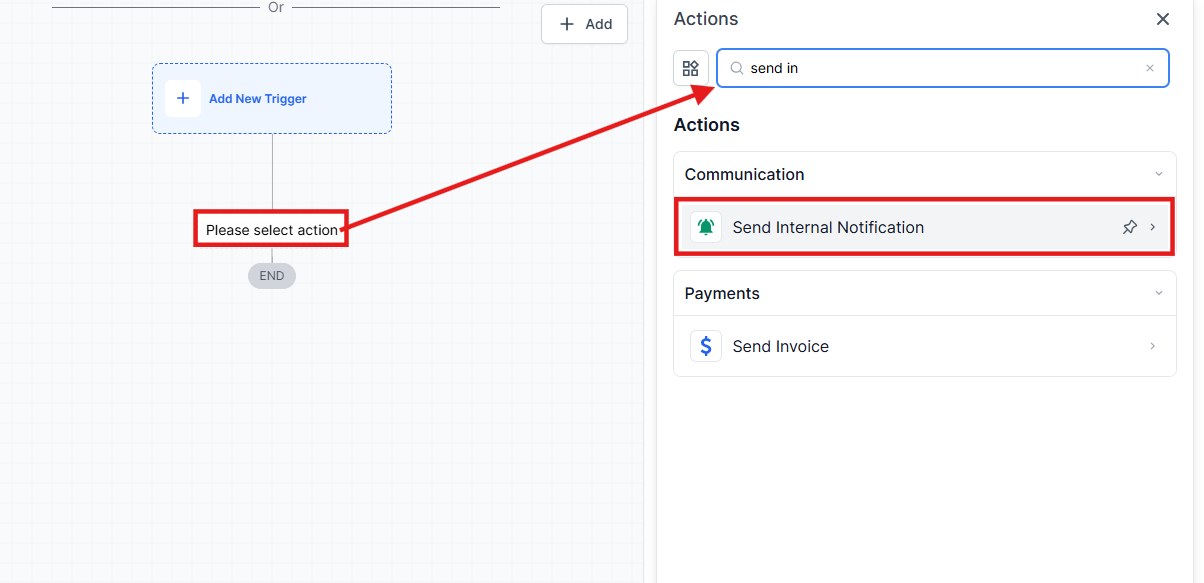 You can customize the actions, from if/else conditions, to sending an email or SMS, assigning a tag, and sending internal notifications. Customize the action(s) as you wish that makes sense for your business!