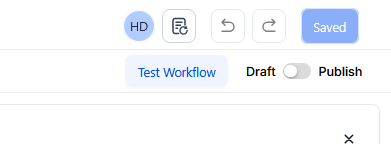 - Use the “Test Workflow” button next to the Publish toggle switch to simulate the workflow and verify that it functions as expected. For a detailed guide on workflow testing, refer to our article, “Using the Testing Features in Workflows.”