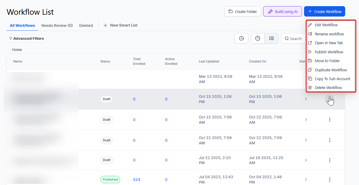 - Be sure to test your Workflow to ensure it is set up correctly using the Test Workflow button next to the Publish toggle switch.